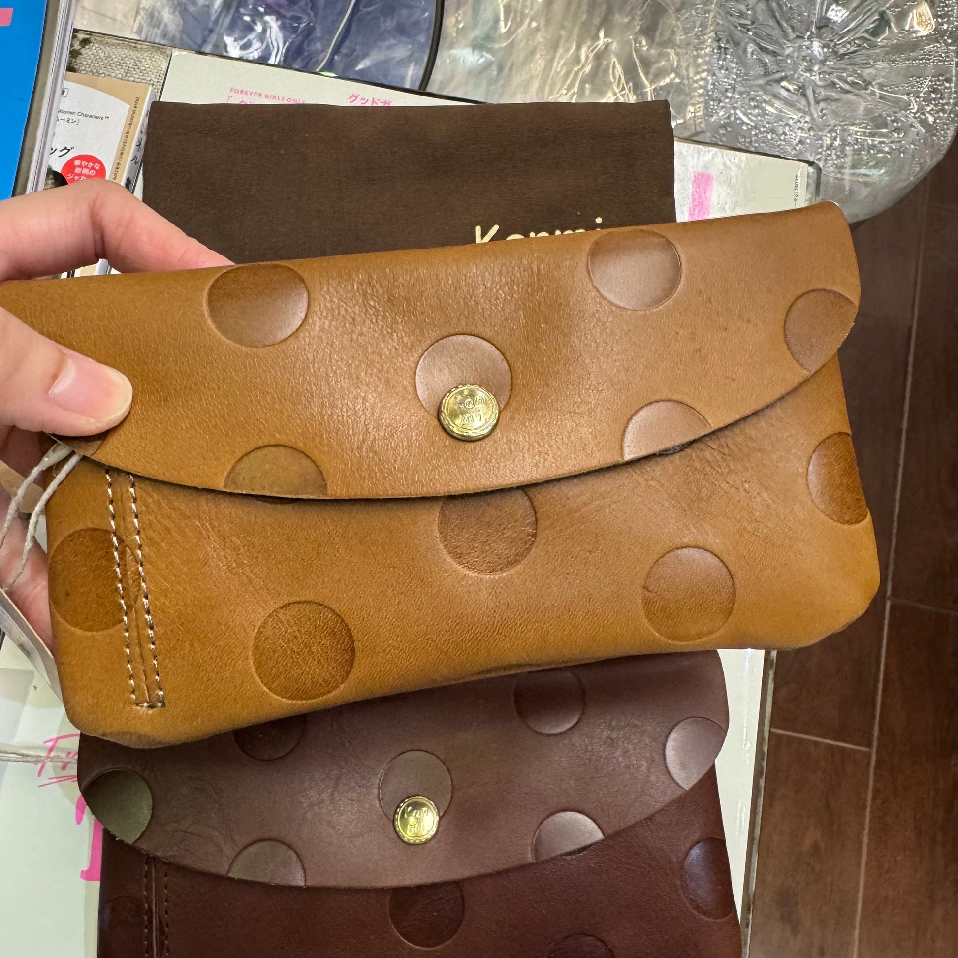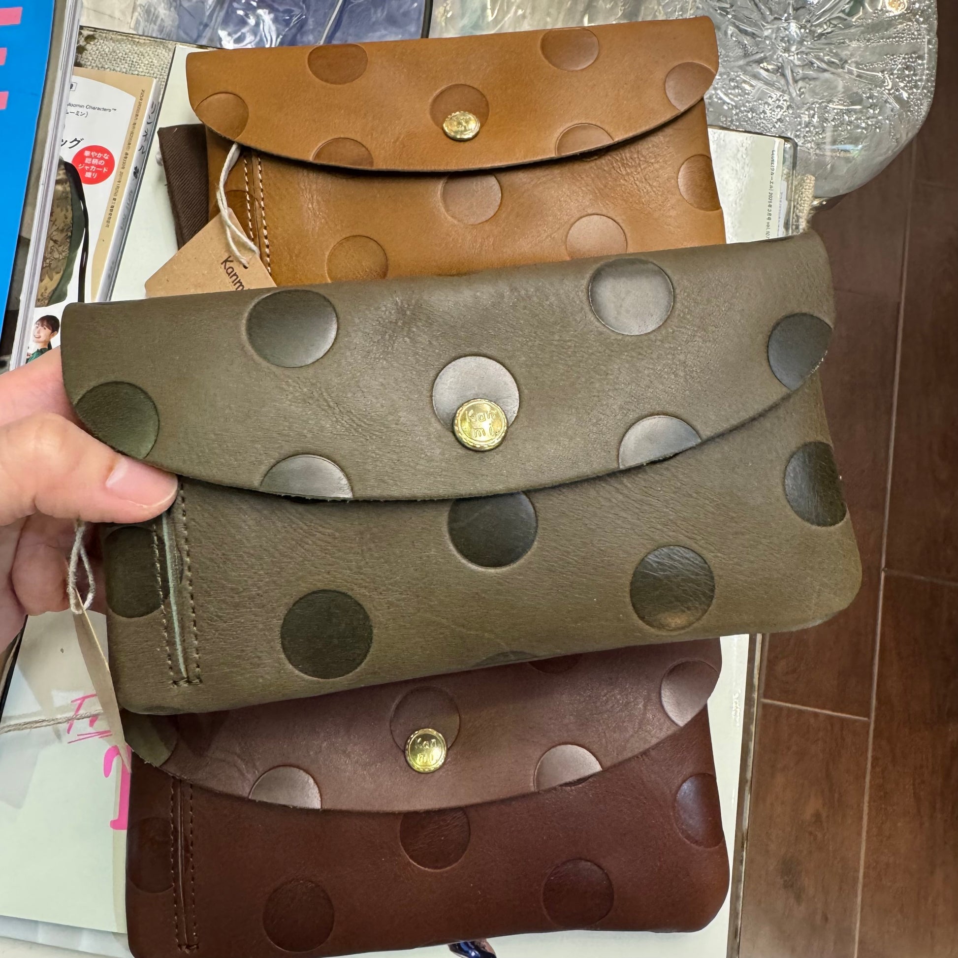 Kanmi Polka Leather Long Wallet, 3 Colors, made in Japan