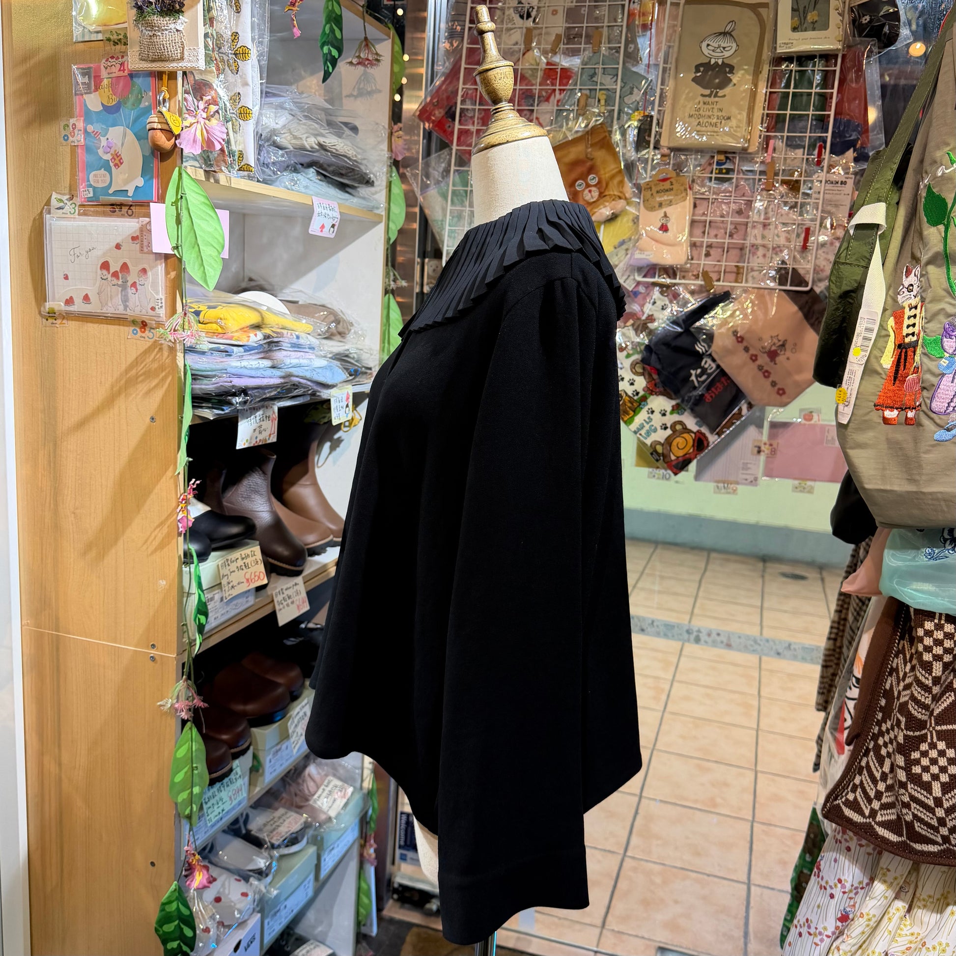 Mizuiro Ind Frill Black Blouse, made in Japan