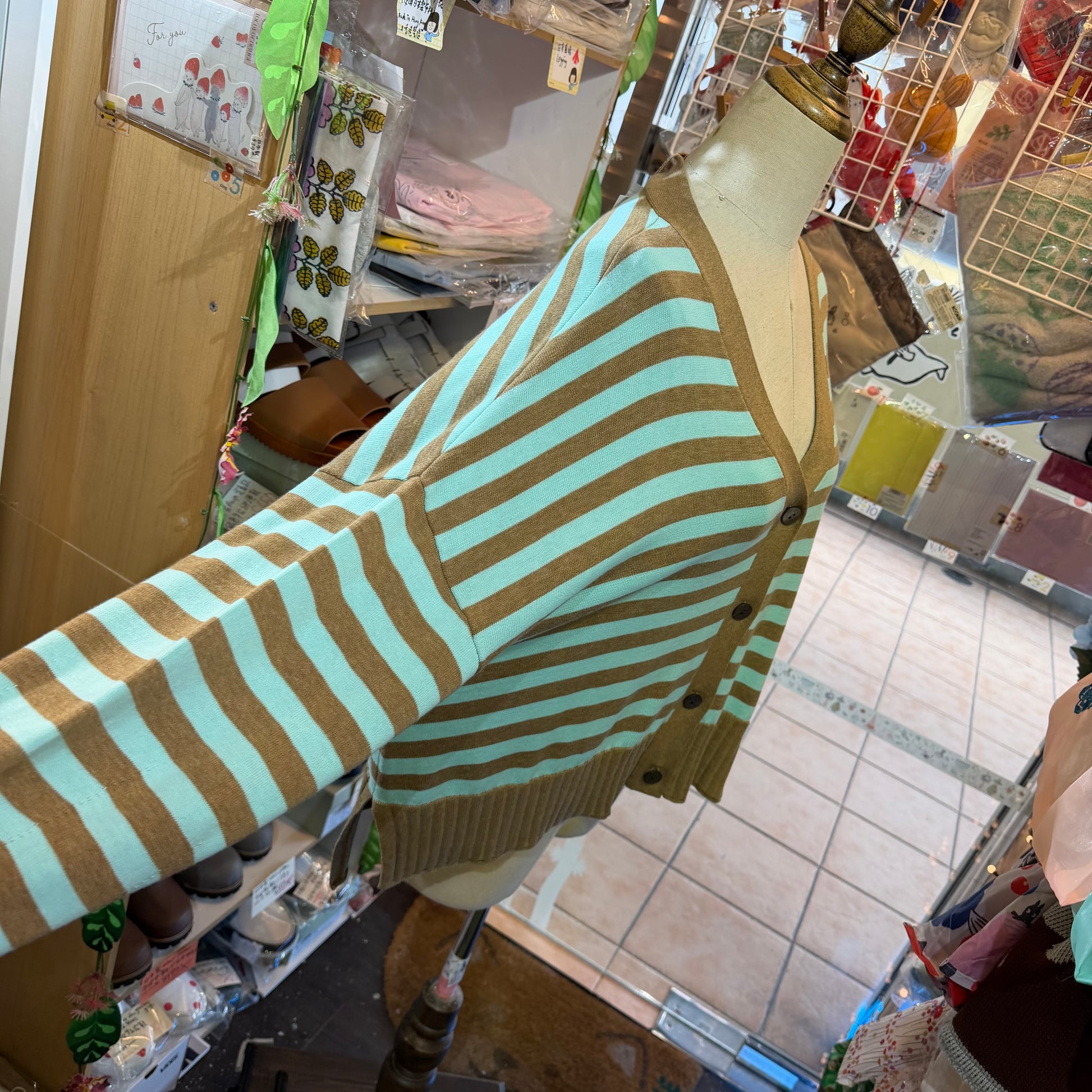 Tumugu Brown X Mint Striped V-neck Cardigan